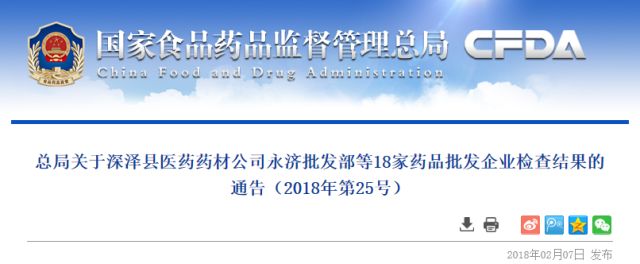 今日(2月7日)总局发出对18家药品批发企业检查结果的通告,此18家是在2017年的55家飞行检查中发现有严重问题的企业。总局分别对每家企业检查出现的问题进行了一个通告。也希求各级食品药品监督管理局要继续加强对药品批发企业的监督检查;对发现的违法经营行为严肃查处,公开曝光;严厉打击药品批发企业违法经营行为,切实保障药品质量安全。 总局原文如下: 2017年,国家食品药品监督管理总局组织对55家药品批发企业开展飞行检查,其中发现18家企业存在严重违反药品经营质量管理规范的情形,依据《药品医疗器械飞行检查办法》,现将检查结果通告如下: 一、对深泽县医药药材公司永济批发部检查发现,该企业直接将药品销售给本企业业务员,再由业务员自行销售。企业多间标示为宿舍的房间内,存放有药品、打票机、空白及打印好的随货同行单。企业现场不能提供在库药品的购进发票及付款流向凭证。对存放在自行车棚、车库及宿舍内的大量药品不能提供其合法来源证明。企业计算机系统无法对经营全过程进行管控,致使经营药品的来源和去向不可追溯。涉嫌违规向个人销售含麻复方制剂。企业对检查工作态度消极,采取人员脱岗躲避、隐瞒事实、藏匿计算机系统和税控主机、转移部分票据等方式对抗检查。 二、对温州时代医药有限公司检查发现,该企业违规将米非司酮片销售给零售药店。企业质量管理部门未能有效组织冷库验证,未按规定对相关设备进行校准和检定。企业在质量管理体系关键要素发生重大变化时,未开展内审。企业经营中药材和中药饮片,未设置专用的养护场所。 三、对合肥温理医药有限公司检查发现,该企业开具的多张发票和应税劳务清单在其计算机系统内无相应记录。企业承认上述应税劳务清单中所显示的药品以及相应采购、验收、销售等记录凭证系企业编造,未发生实际经营。企业虚设部分工作岗位,伪造工资发放表、考勤表、花名册、劳务合同等资料,质量管理部门负责人、保管员等未实际任职。 四、对江西药都樟树药业有限公司检查发现,该企业质量体系管理文件未明确企业使用2套计算机管理系统,企业实际在用的计算机管理系统存在2个版本,分别使用独立的基础数据库。抽查企业在库品种氯雷他定糖浆、聚乙二醇滴眼液、奥卡西平片等进口药品,现场不能提供上述品种首营资料和同批号检验药品报告书。 五、对河南省万隆医药有限公司检查发现,该企业对购进的原料药盐酸克林霉素和白芍片、桔梗片、板蓝根片等15种中药饮片不能提供合法的来源证明,计算机系统无法查到相关供货商资质,无采购、收货、验收、销售、出库复核、运输等相关记录。企业承认2017年中药饮片库未储存过药品,中药饮片库、中药材库均无库存,企业上述情形不能实现对经营药品的可追溯。 六、对湖北天地人医药有限公司检查发现,该企业在许可证载明的仓库地址之外存储注射用左亚叶酸钙等11个品种药品,共计9732支(盒),该区域不具备药品储存条件。企业冷链运输记录显示,2017年6月一次销售需冷链运输的重组人干扰素ɑ-1b注射液等药品6400支(盒),运输过程仅启用一个保温箱,无法满足实际运输需求。 七、对湖北远康药业有限公司检查发现,该企业中药材常温库中存放的枸杞、山药等品种不能提供购进单位、购进票据及采购记录。2016年9月销售的一批三七、炒山楂、金银花等中药饮片,截至2017年7月一直未开具发票。企业未按药品包装标识的温度储存药品。企业将部分药品销售给没有资质的使用单位。 八、对深圳市永祥医药有限公司检查发现,该企业在许可证载明的仓库地址之外存储艾地苯醌片630盒、金糖宁胶囊100盒、珍母口服液150盒等,该区域不具备药品储存条件。企业未经许可在注册地址以外设置办公场所,面积约160平方米。企业质量管理部门不能有效履行职责。企业温湿度监测系统不能有效报警。 九、对重庆康洲医药有限公司检查发现,该企业经营范围不含中药材、中药饮片,在企业质量管理部发现销售中药饮片票据。企业2017年6月销售单中标注的销售人员,离职档案显示均在6月前离职。企业2017年7月购进刺五加注射液3500瓶,计算机管理系统显示从收货、验收到销售复核、出库只有半个小时,企业工作人员承认未在库房对该批药品进行收货验收。 十、对重庆恩康医药有限公司检查发现,该企业购进的妇炎康片、复方氨酚烷胺片、盐酸氨溴索葡萄糖注射液等药品,计算机系统内进、销、存数据与实际库存不一致。企业销售的部分药品未开具发票,未做到票、账、货、款一致。企业负责人承认企业有两套财务账。 十一、对宜宾众联药业有限公司检查发现,该企业部分药品的销售付款流向与销售药品财务账目内容不符。企业质量负责人和质量管理部门负责人对企业情况掌握不清,不能正常履行岗位职责,岗位实际为虚设。 十二、对成都瑞泰药业有限公司检查发现,该企业销往广东省普宁市某药店800瓶人血白蛋白,经调查,下游药店确认未从该企业购进过人血白蛋白。 十三、对四川金池药业有限公司检查发现,自2016年全国药品批发企业专项整治后,该企业仍存在销售第二类精神药品和含特殊药品复方制剂现金结算问题。企业销往某医疗机构盐酸曲马多片、盐酸曲马多注射液、艾司唑仑片等存在票、账、货、款